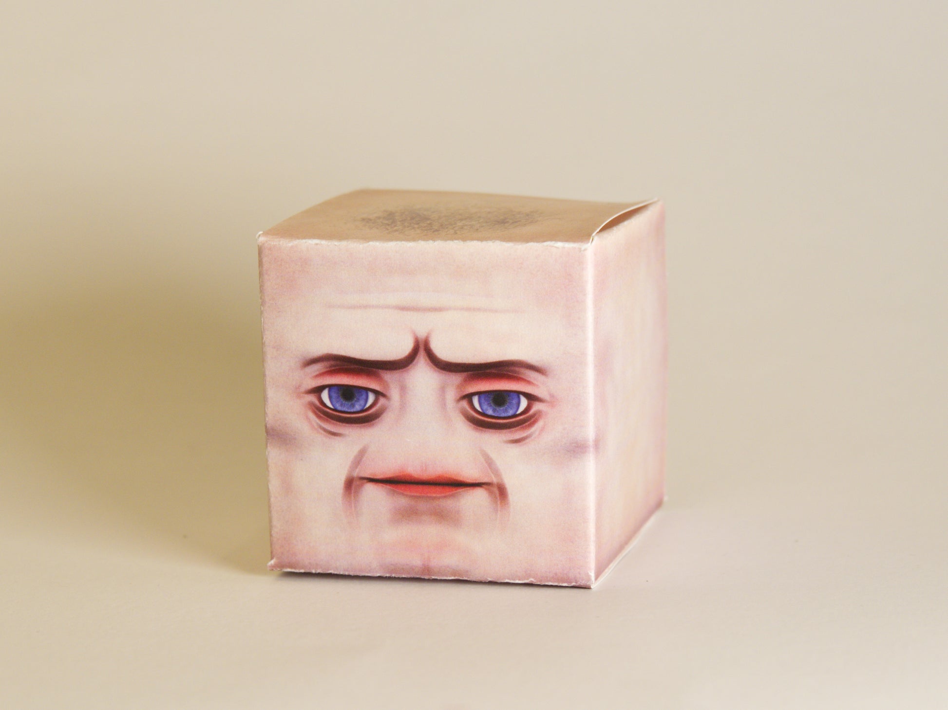 Make your own cubehead companion! This kit is printed on high quality cardstock, and the assembled cube is 2.3 inches (6 cm) to a side.